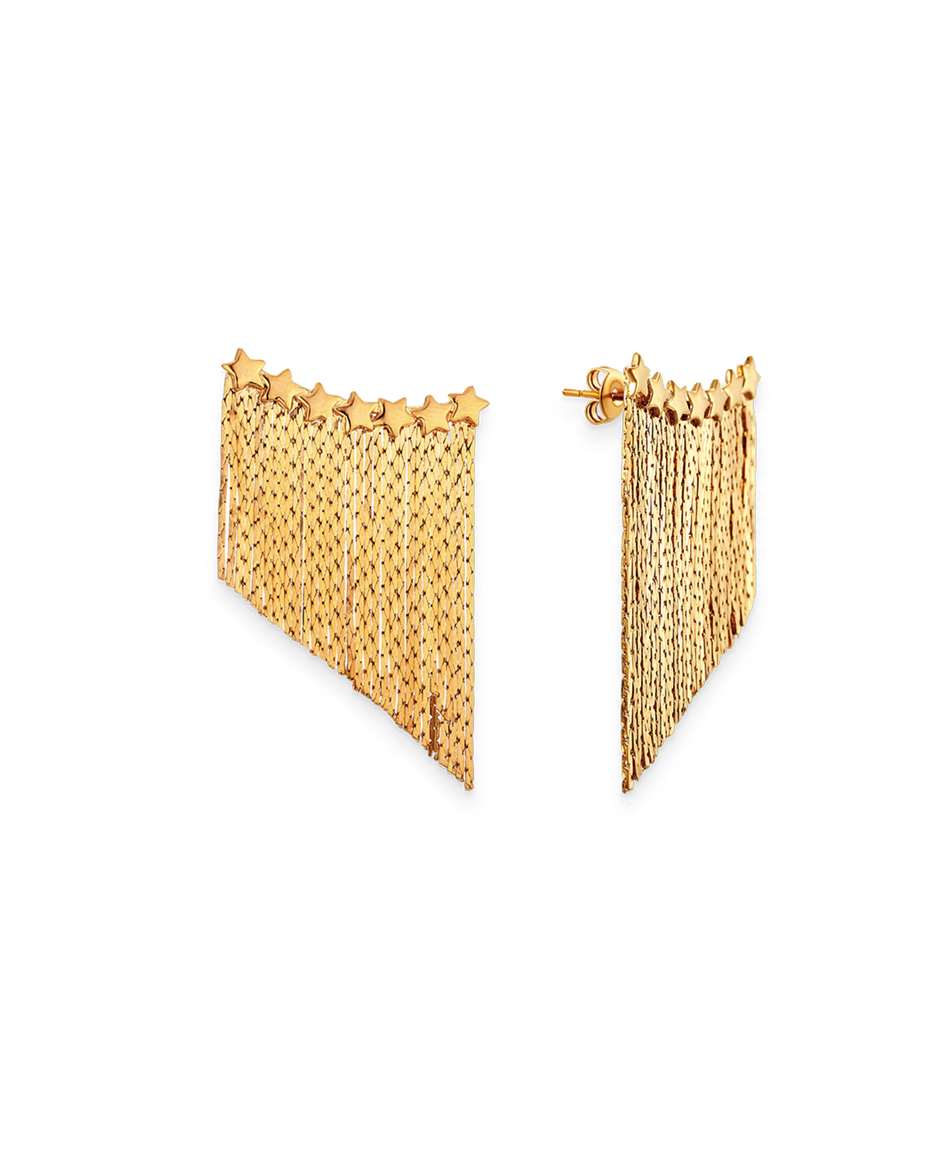 Let the stars align with these celestial earrings. A pretty row of stars delicately follows the curve of your ear while the chain hangs effortlessly and catches the light. Designed with comfort in mind, these lightweight, versatile earrings are perfect for casual everyday looks as well as special occasions. Wear your hair in an up-do to really show them off.