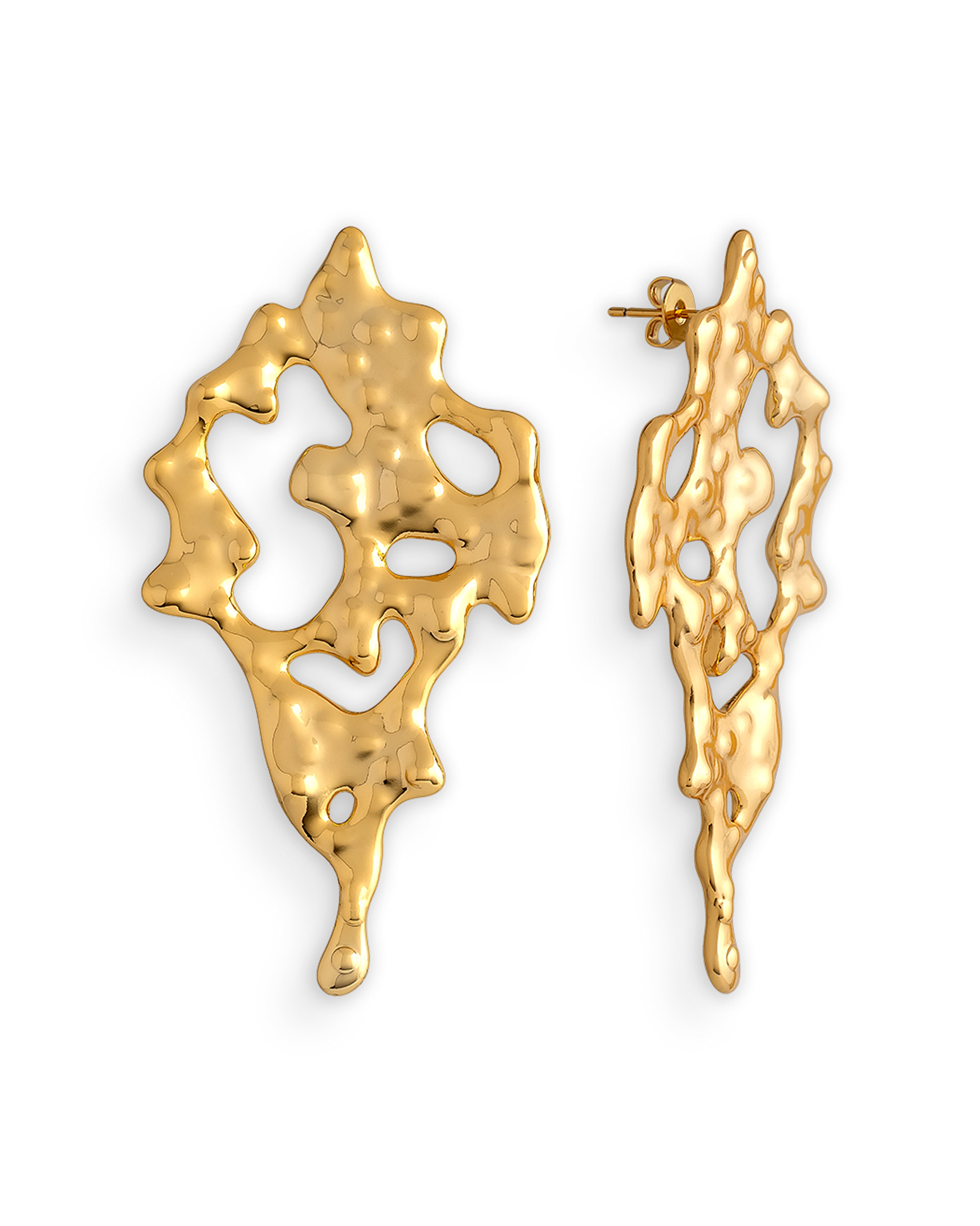 Embrace the edgy cool-girl vibe with this grungy lava-inspired pair. These molten textured statement earrings are perfect for a night out, whether it's a fancy dinner, a fun party, or simply to elevate your daily looks. Choose between 18ct gold plating or white gold plating to complement your wardrobe and show off your unique style with these eye-catching earrings.
