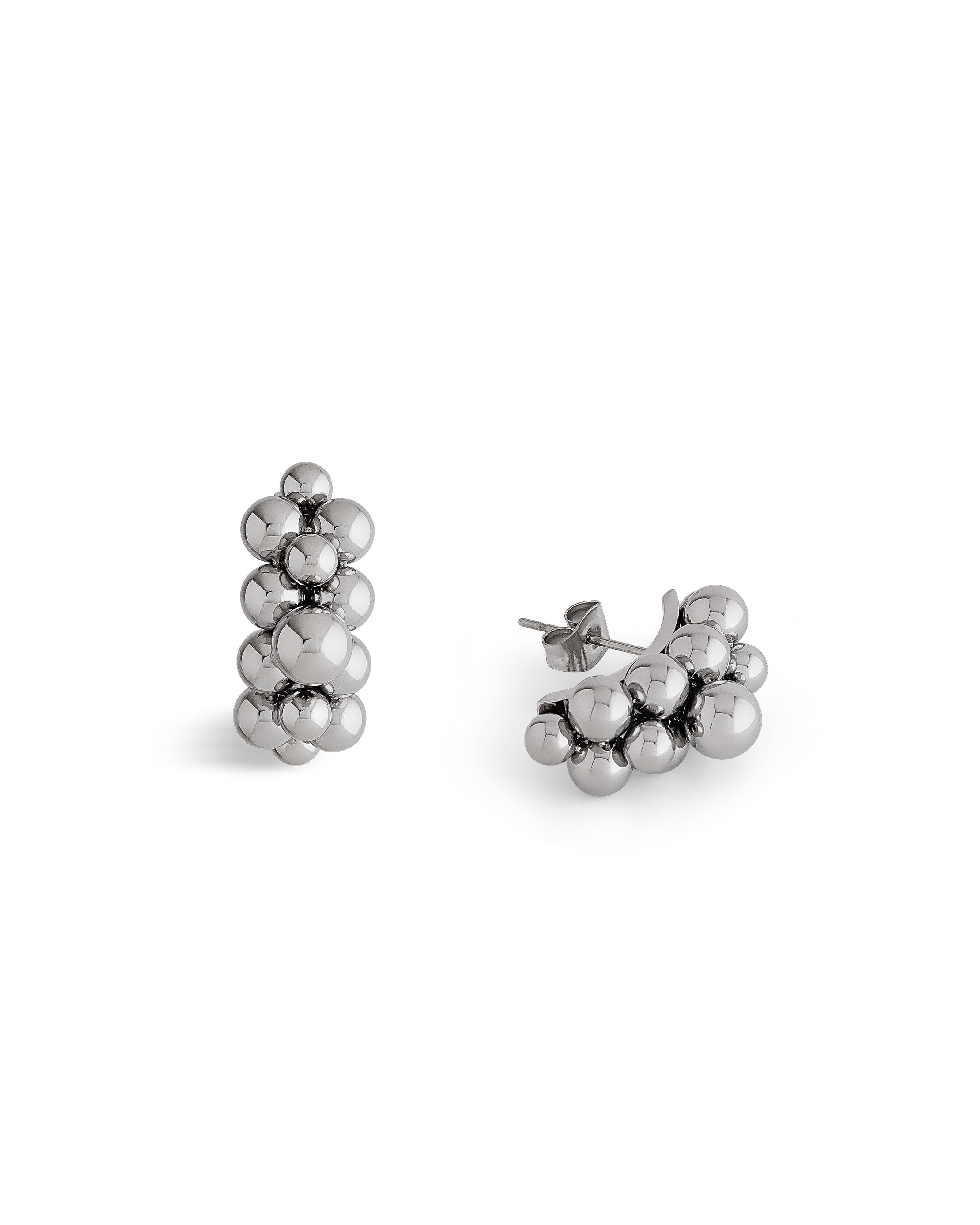 Add delicate detailing to your jewellery box with these elegant studs. Designed with a cluster of small spheres resting on a partial hoop to create a huggie hoop effect, these intricate earrings are compact yet impactful. They’re classically understated so will go with every outfit for every occasion – slipping these earrings on is the easiest decision you’ll make all day.