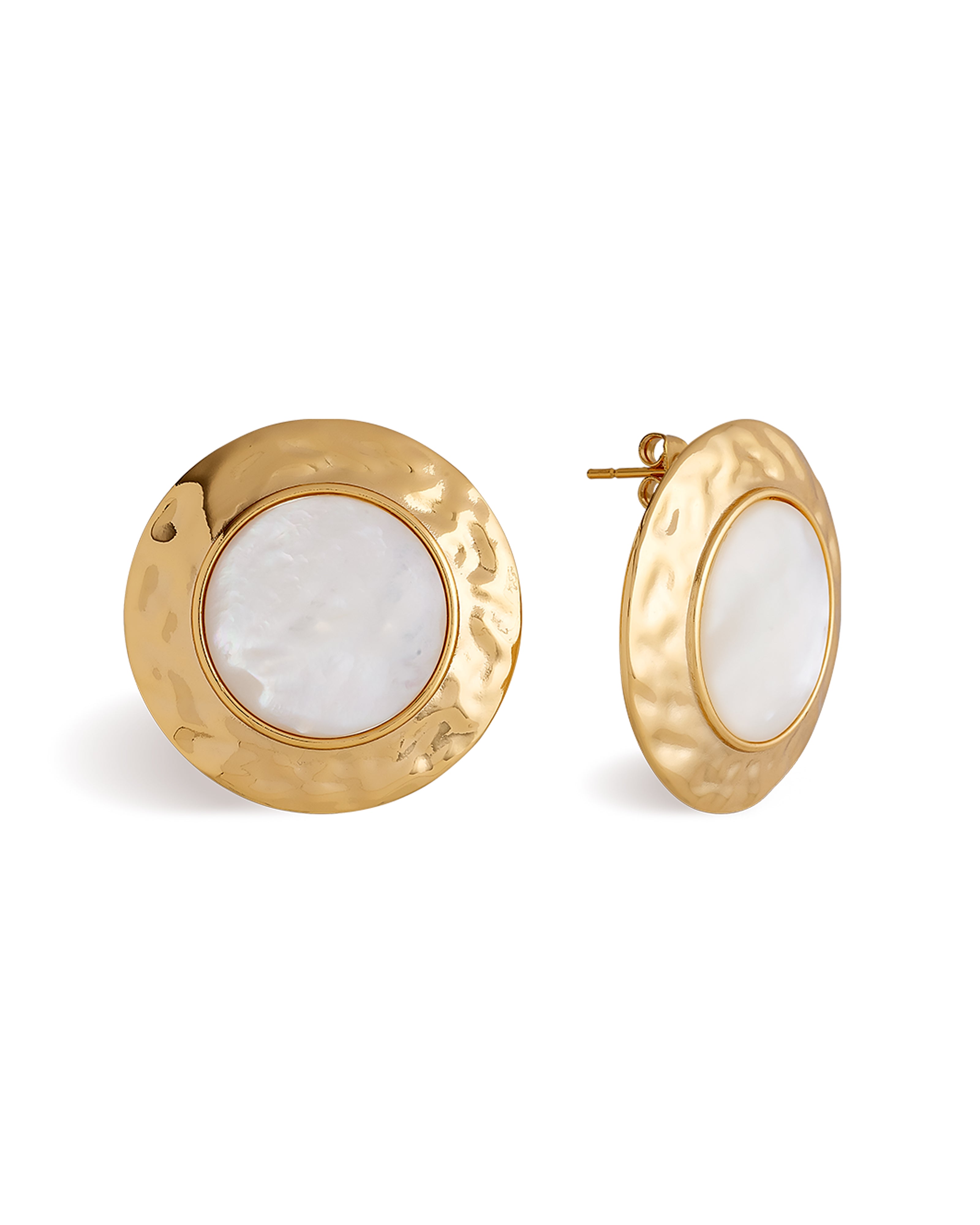 Sleek, chic and unique – that’s the mantra for these stylish coin earrings. Crafted with shimmering discs of hand-selected mother-of-pearl shell with a lightly hammered surround, these earrings are a fun blend of vintage meets modern. Looking good only matters when you feel good – that’s why these pearlescent earrings are designed to be super lightweight so you can keep wearing them day-to-night or office-to-party.