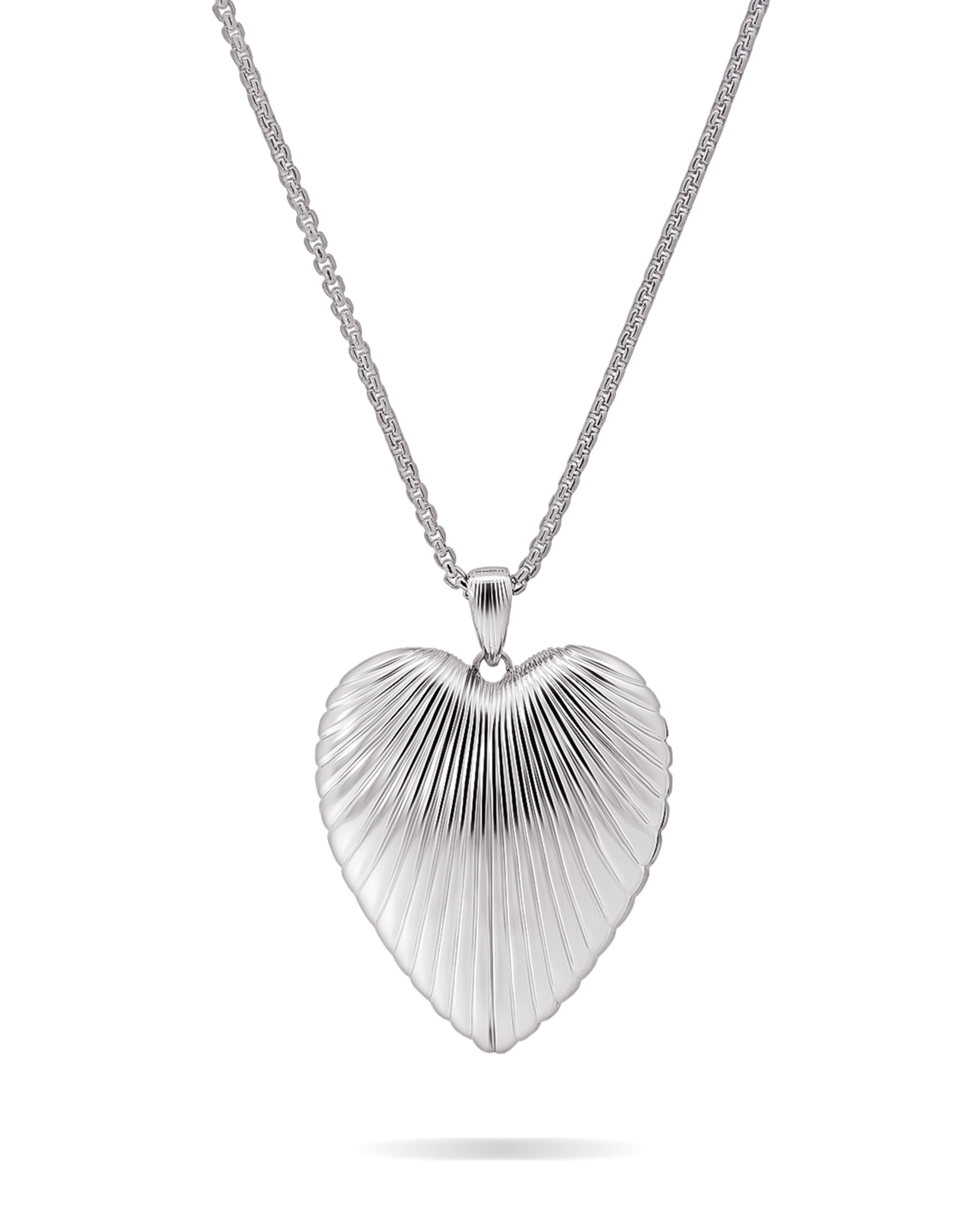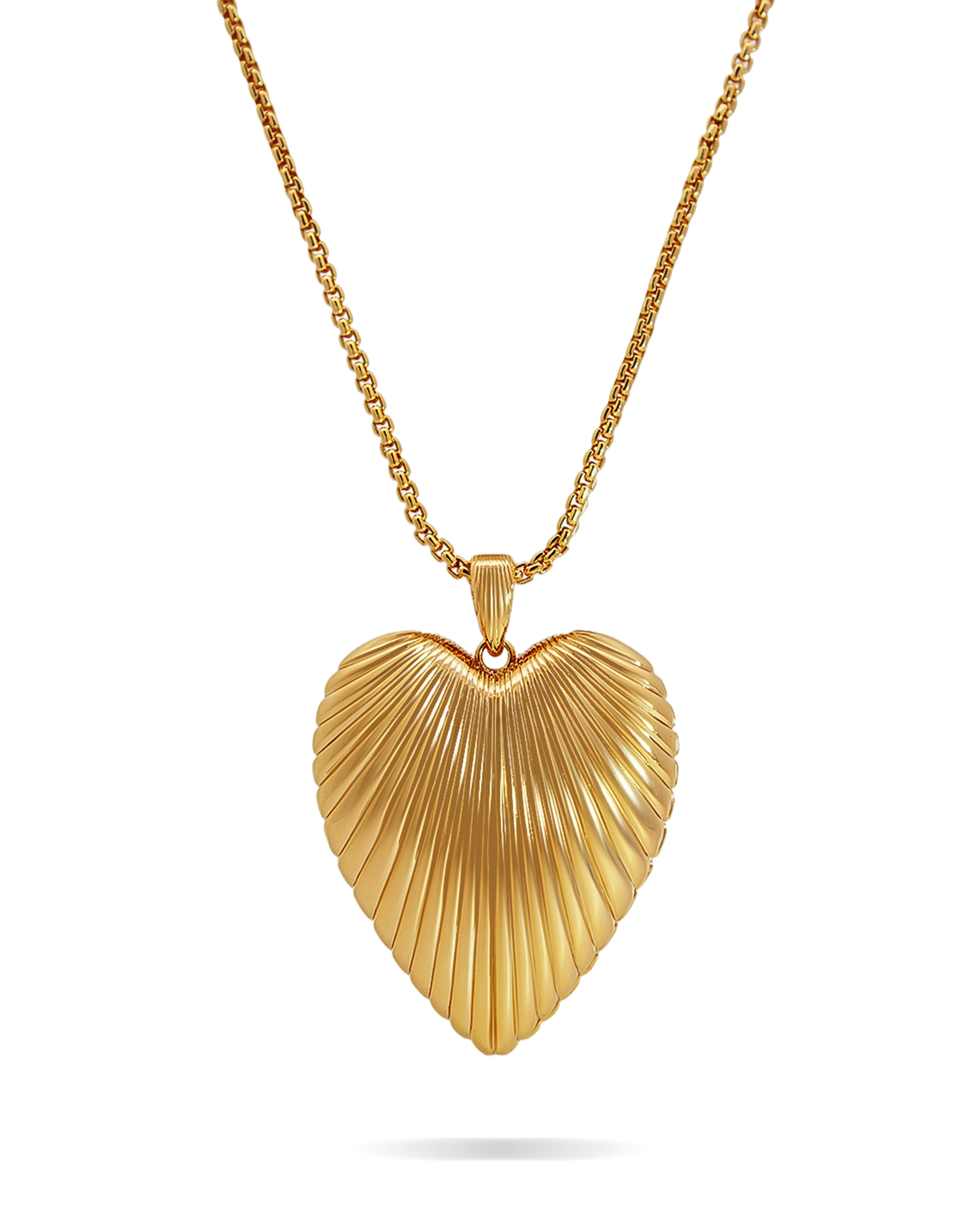 Feel the love (and welcome the compliments) with this heartfelt necklace. Featuring a chunky heart charm topped with ridged line details for added texture, this oversized necklace is designed with an adjustable, square-shape chain – style yours shorter with other necklaces for a layered look, or keep it long for added drama. This playful pendant will make a statement and put a smile on your face every time you catch yourself in the mirror.
