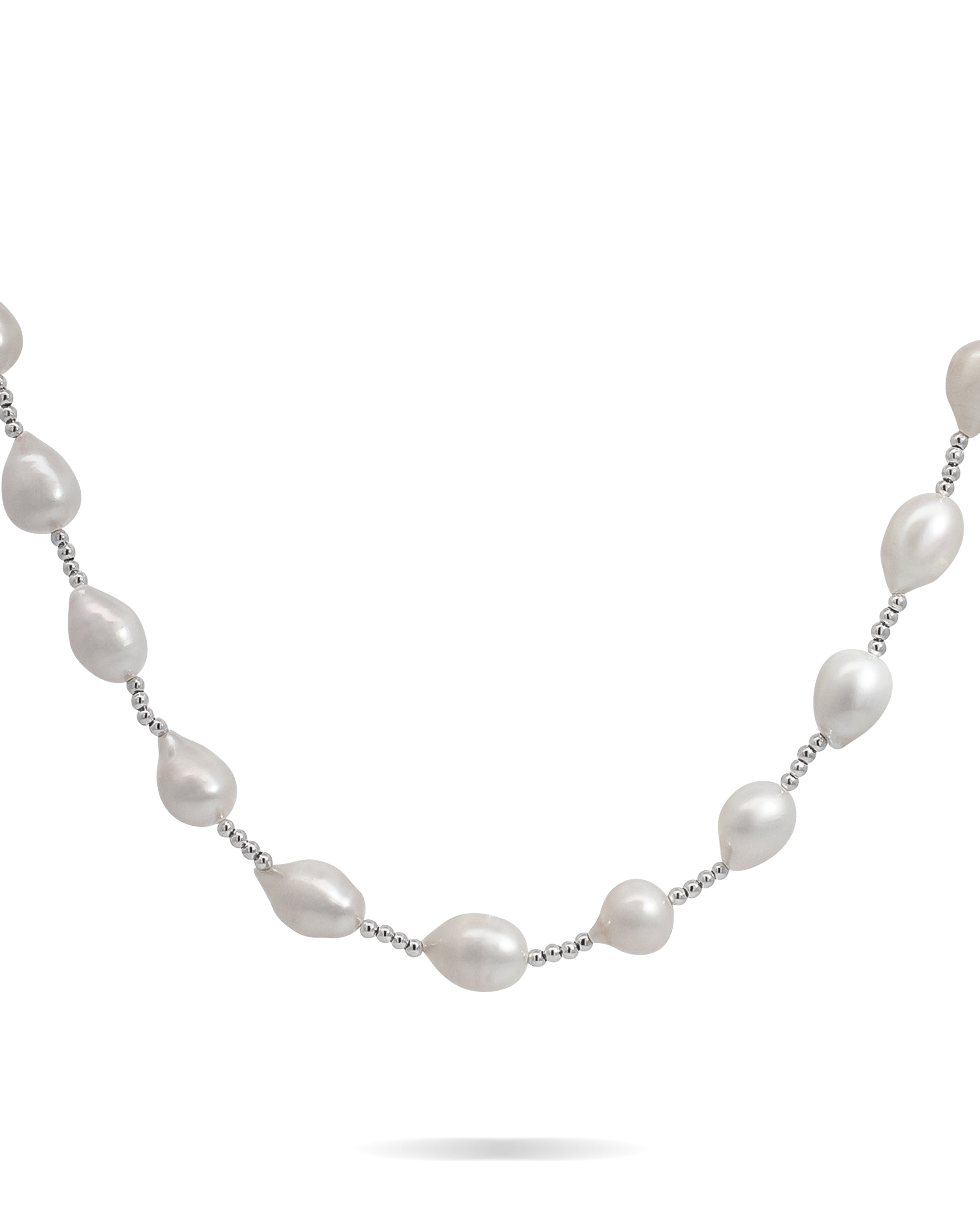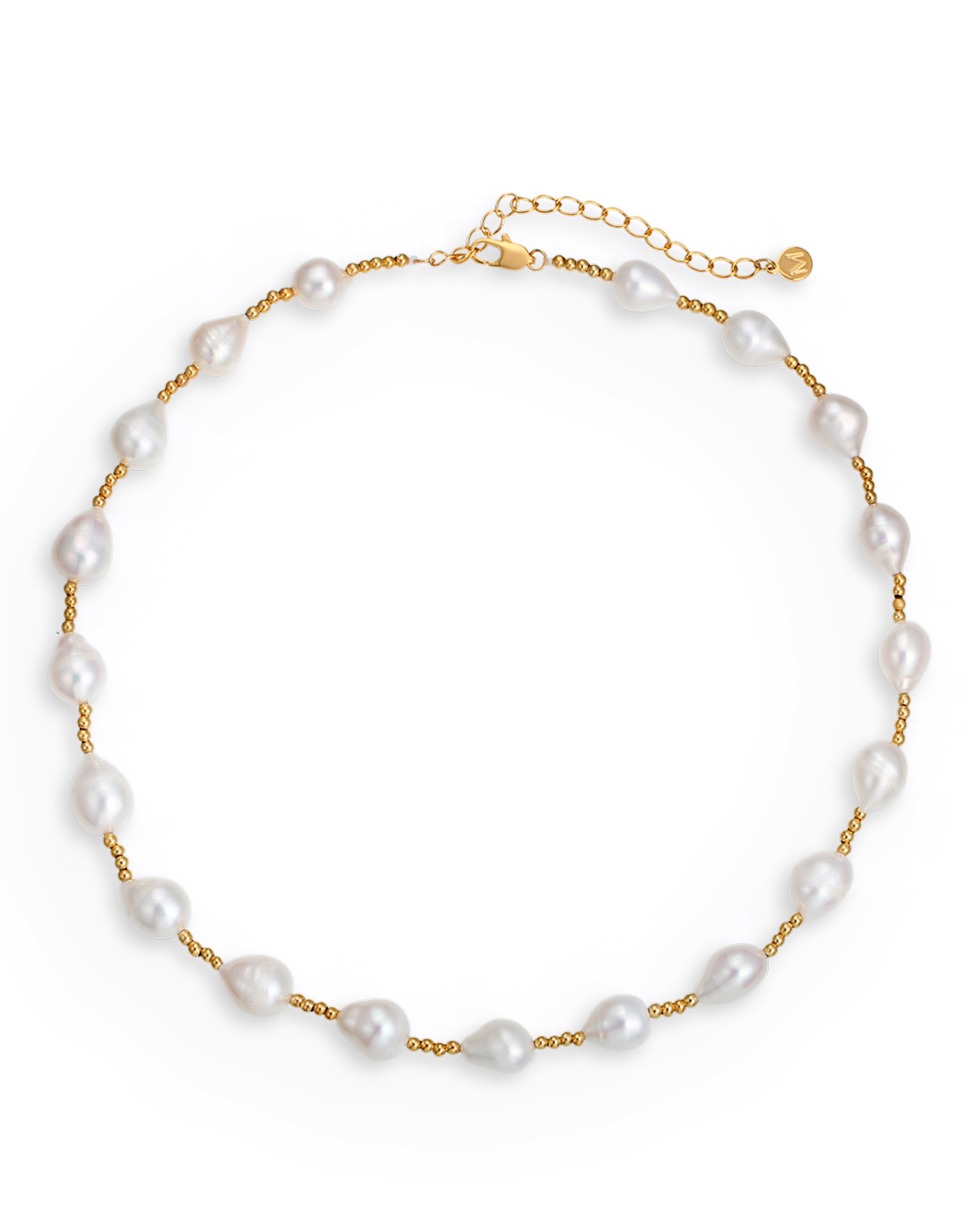Elevate your everyday looks and special occasions (aka weddings!) with this pretty pearl choker necklace. Every jewellery box needs a few staple pieces you can mix, match and stack – this choker is the perfect addition. Designed with unique drop-shaped freshwater pearls hand-picked for their lustre, this timeless necklace is interspersed with small round beads for added texture. Wear yours solo or layer it with more pearl necklaces and chokers from our collection.