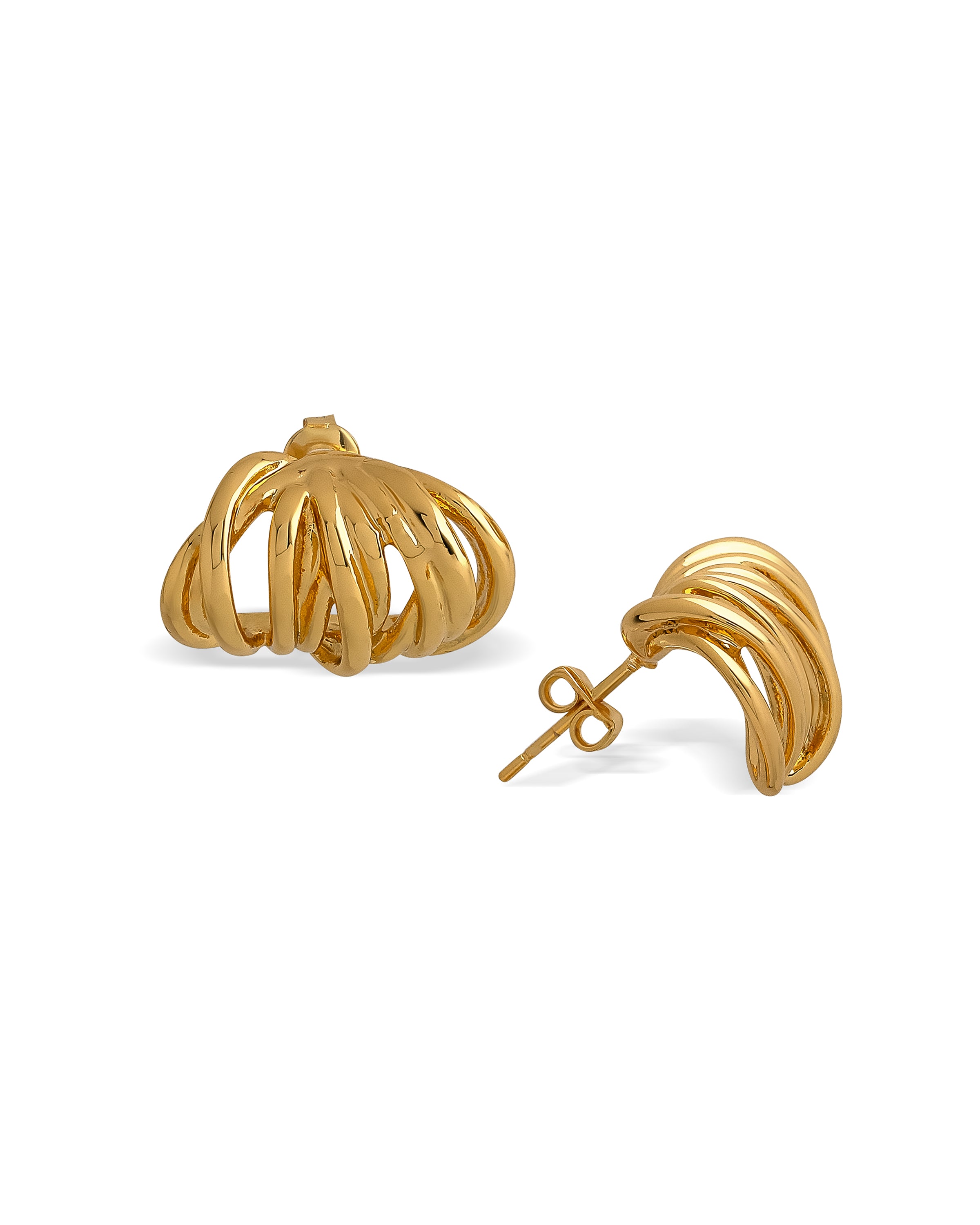 Refresh your earring game with this detailed pair. Designed with ribbed, overlapping layers to create a sculptural finish that catches the light, these shiny earrings are the unique pair you’ll be reaching for day and night. The versatile design makes them easy to style with every outfit – all you need now is a few more Maudella studs so you can create a personalised earring stack that’s truly you.
