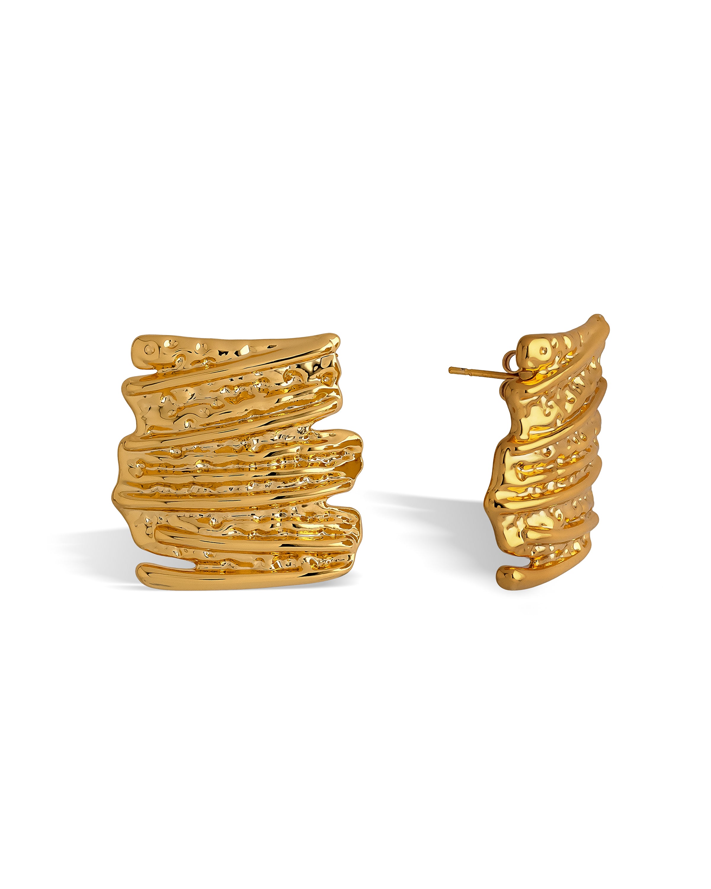 Busy earrings are the easiest way to create a layered look with minimal effort. Designed with a molten base topped with smooth ridges for a layered finish, these stylish earrings are made for every occasion, from city strolls to seaside escapes. Slip these earrings on and feel your outfit (and mood) instantly elevate.