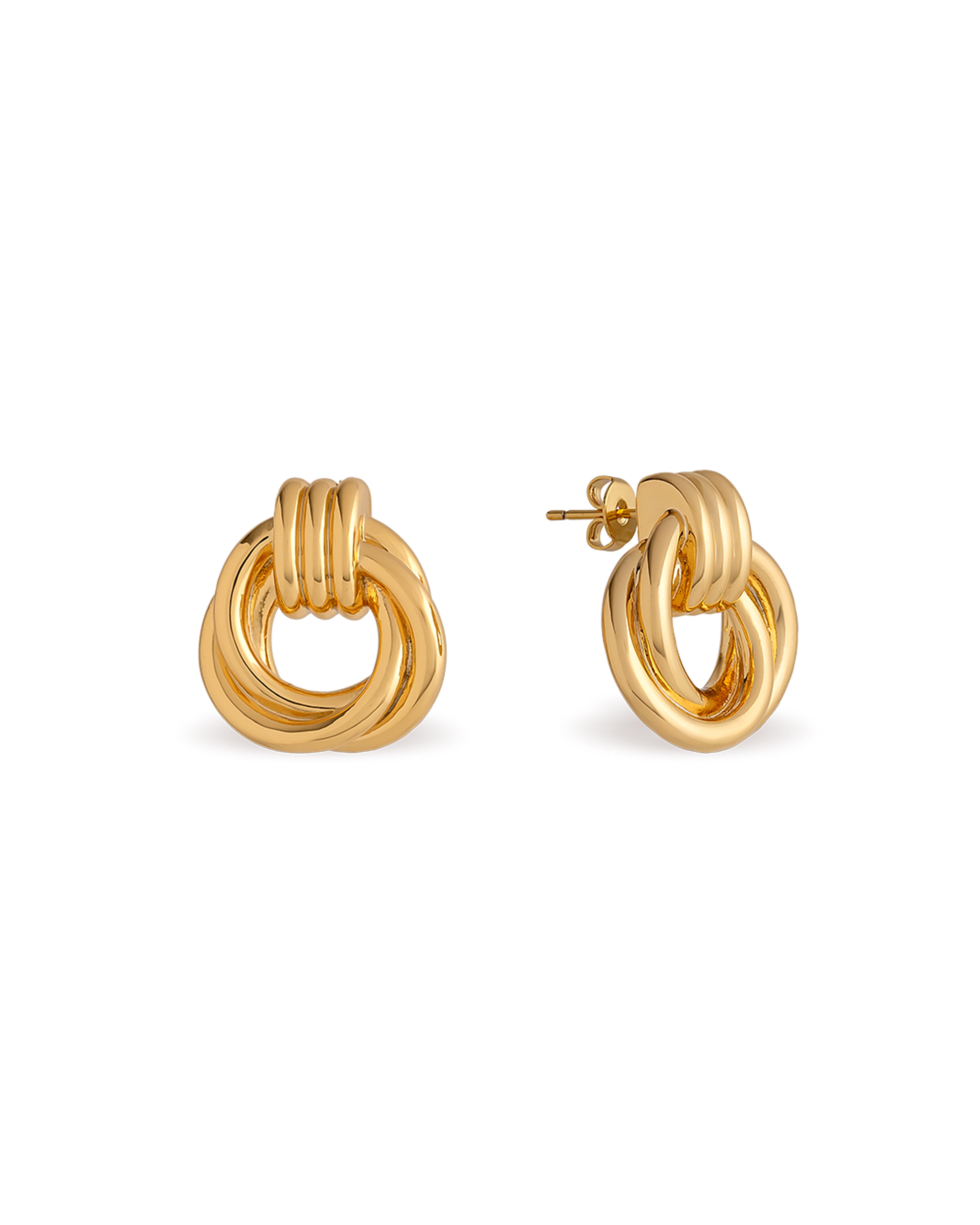 These effortlessly chic solid stud earrings add a sophisticated feel to any outfit. The gentle swirled loops interlink to form a chain-like look. Plated in luxurious 18ct gold, these earrings are so easy to wear and exude refined style. Plus, they come at a good price point, perfect for everyday wear.