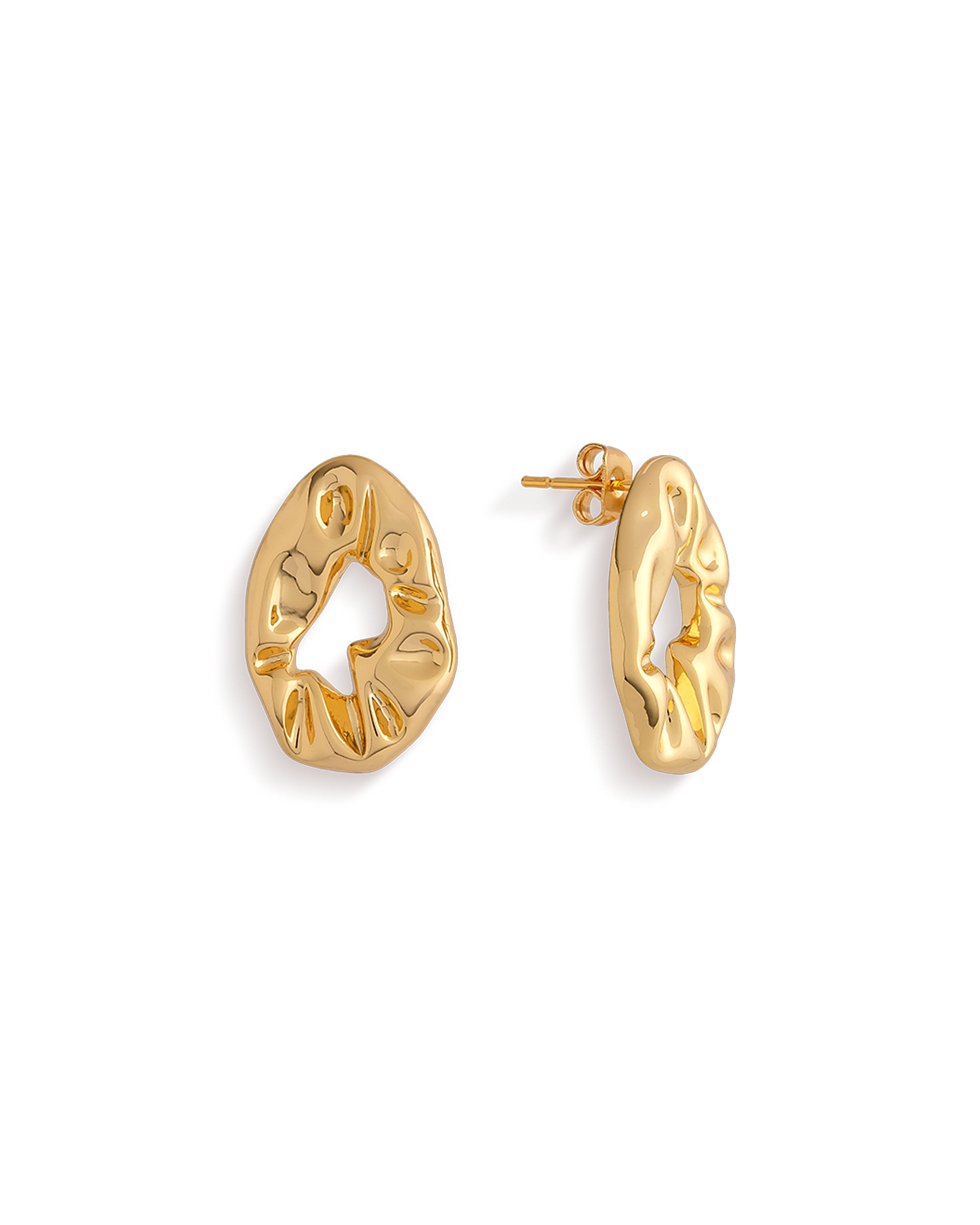 Need texture that turns heads? You've found it. Inspired by the rich texture of scrunchies, these unique earrings are designed with a molten oval shape that delicately hangs from a simple stud. Don’t worry, they’re lightweight so you can wear them again and again. Bring more fun to your jewellery collection with these versatile earrings – they’re the perfect ‘treat yourself’ pair.