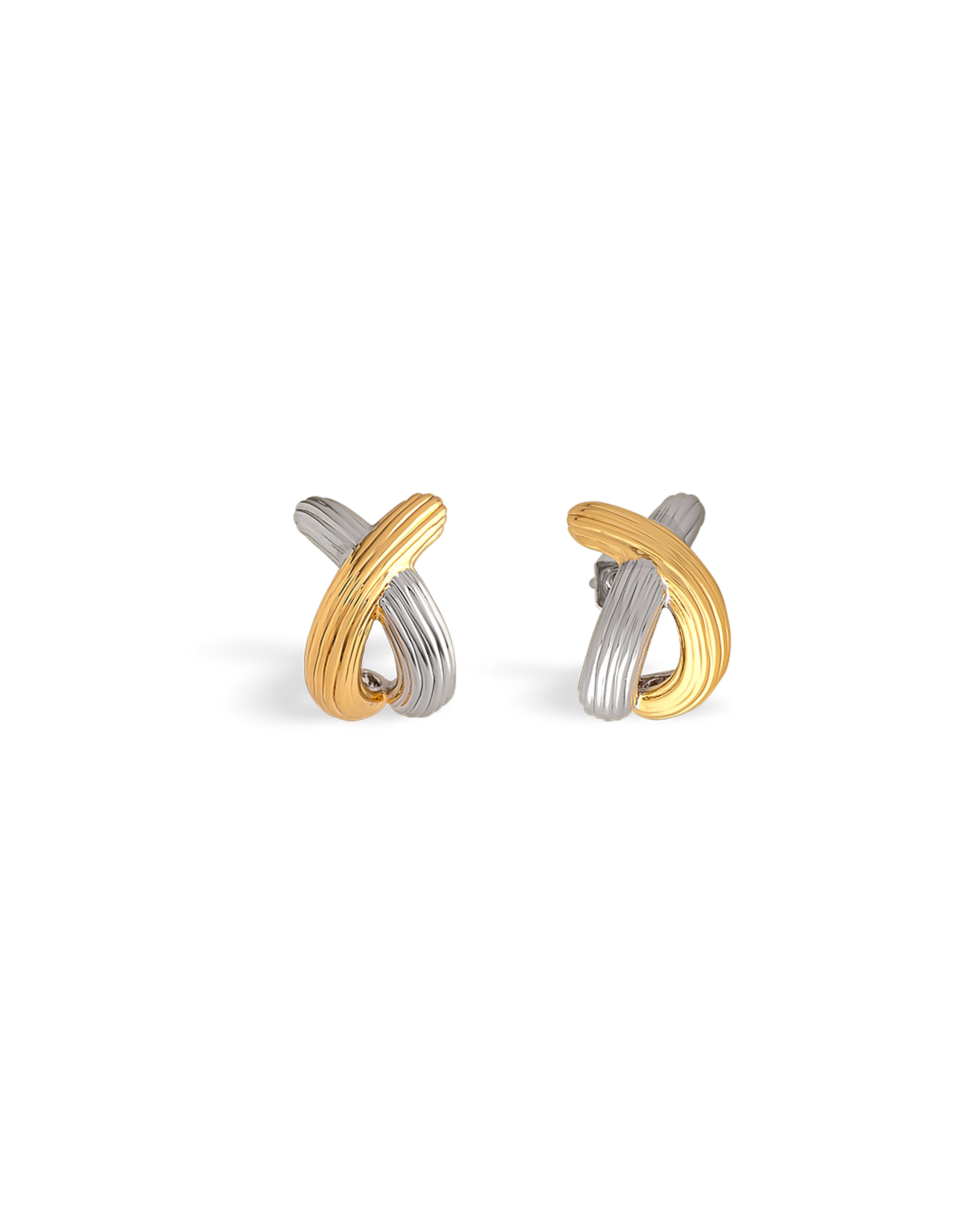 Kiss dull days goodbye with these textured earrings. Crafted with a subtle ‘kiss’ shape through the overlapping layers, these earrings are finished with delicate ridge detailing for extra texture for every occasion. Not sure whether to go for gold tones or silver tones? Go for both with the gold and silver combo! You know us, we always think of everything.
