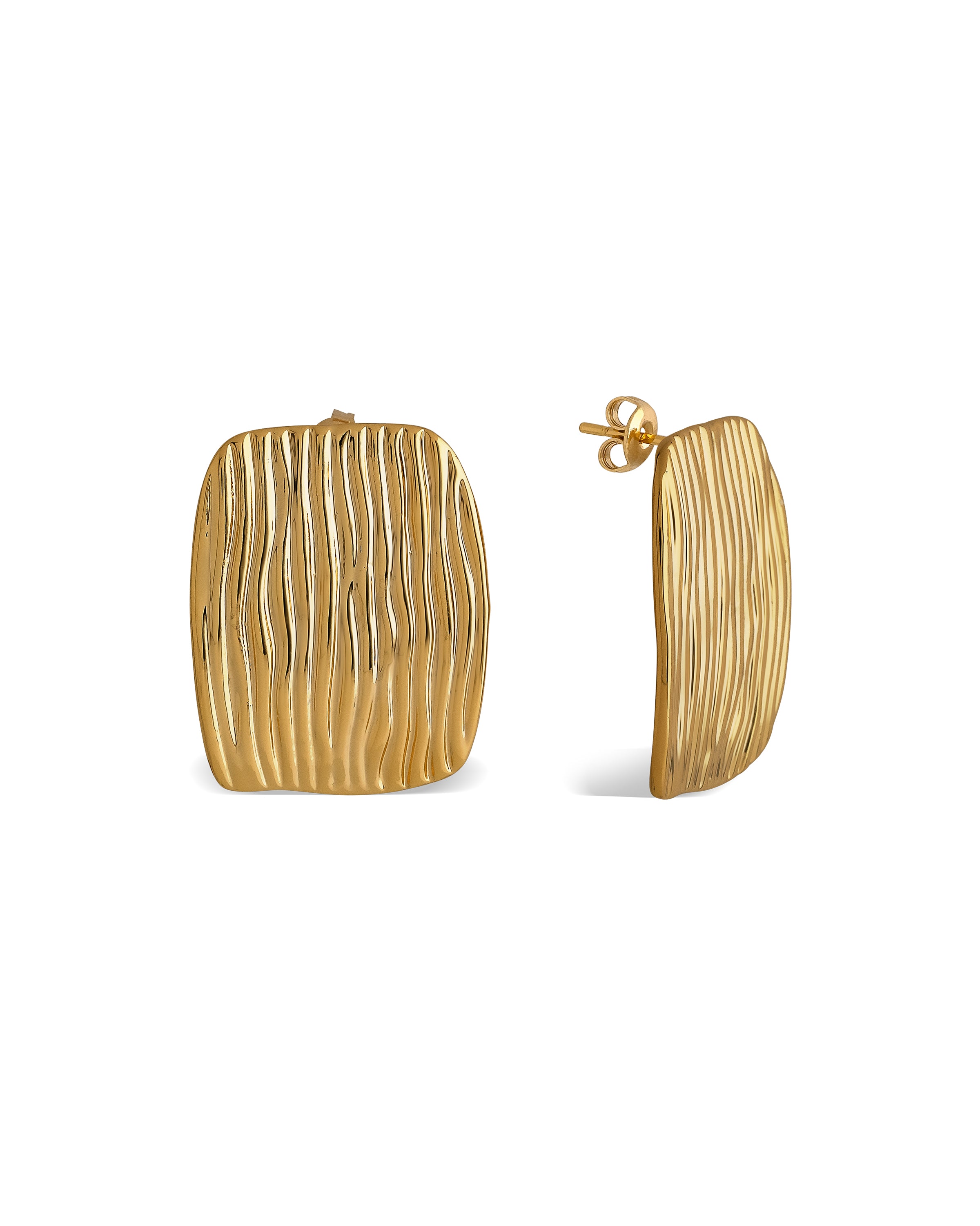 Introduce instant luxury to your everyday with a pair of shiny earrings that catch the light and improve your mood. Designed with a rectangular shape topped with ridge detailing, this playful pair will boost your confidence and add a little something to your outfits. Whether you style them solo or layer up your Maudella jewellery to create a stacked feel, these earrings are the perfect pick-me-up.