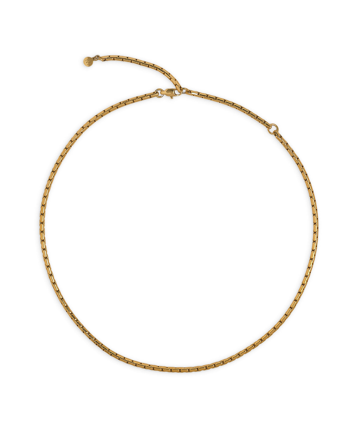 Chain necklaces just got more chic. Crafted with a sleek box-link chain for a modern feel, this stylish necklace is the kind of easy everyday layer you can wear with anything (and everything) in your wardrobe. There are so many ways to wear this versatile piece – stack it and layer it with other Maudella styles, or go minimal with a single chain for everyday wearing.
