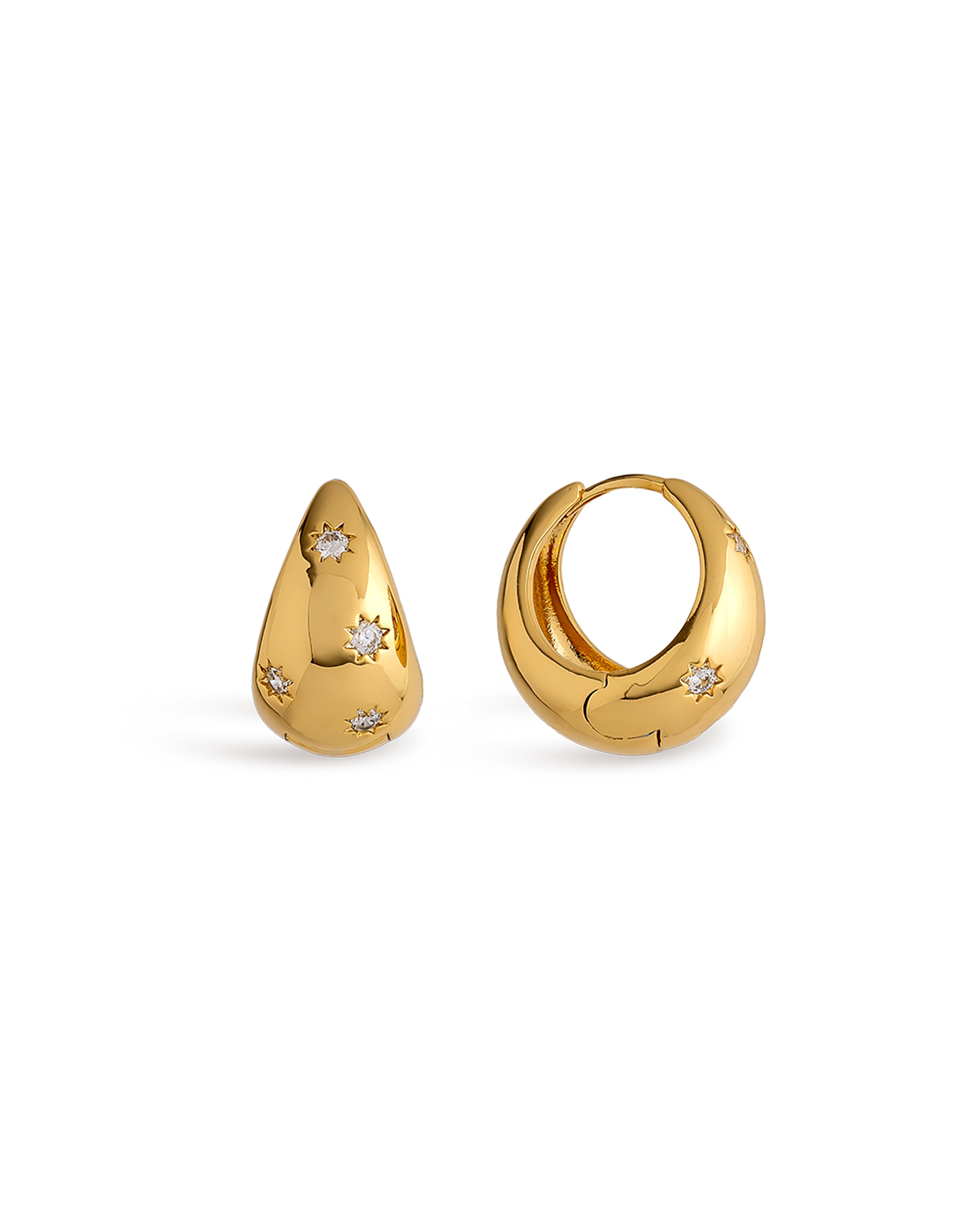Add more glam to your everyday with these chunky midi-hoop earrings. Featuring engraved stars embellished with cubic zirconia for a touch of sparkle, these chic earrings are the classy addition your jewellery box has been waiting for. Slip them on for every occasion, from a day in the office to brunch with friends. These focal earrings are made to be loved and worn, not saved for only special occasions.